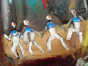 C'est bien des années plus tard que j'ai réalisé que notre père avait peint un scène de port plus osée. Au grand dam de notre mère il ajouta longtemps après, au centre du tableau, ce coeur rouge, elle trouvait qu'il avait tout gâché ! Tous ces personnages très animés, les couleurs vives habituelles qu'il utilisait, chaque scène de ce tableau ressort comme une lecture. De nouveau beaucoup de détails à découvrir ...